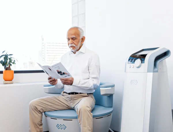 Stay fully clothed, no probes or downtime—simply relax in the Emsella chair during treatment.