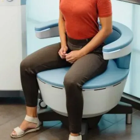 The EMSELLA® chair targets the entire pelvic floor region non-invasively while you sit fully clothed—no direct contact needed.