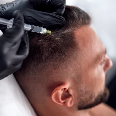Hair Restoration uses advanced PRP/PRF injections to stimulate dormant follicles, reduce shedding, and promote thicker, fuller hair naturally—with minimal discomfort and no downtime.